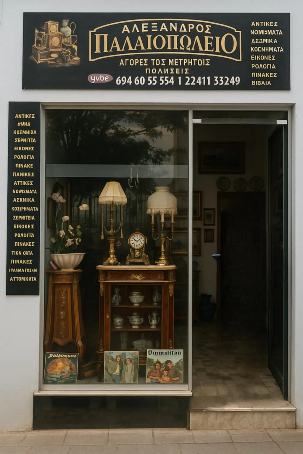 Η αγάπη μας για την ιστορία, την τέχνη και τα παλαιά αντικείμενα με ψυχή μεταφράζεται σε έναν χώρο γεμάτο μοναδικές αναμνήσεις και διαχρονική αξία. Έχουμε συγκεντρώσει για εσάς μοναδικά κομμάτια από διαφορετικές εποχές, σπάνια αντικείμενα και αυθεντικές αντίκες που κουβαλούν τη δική τους ξεχωριστή ιστορία.